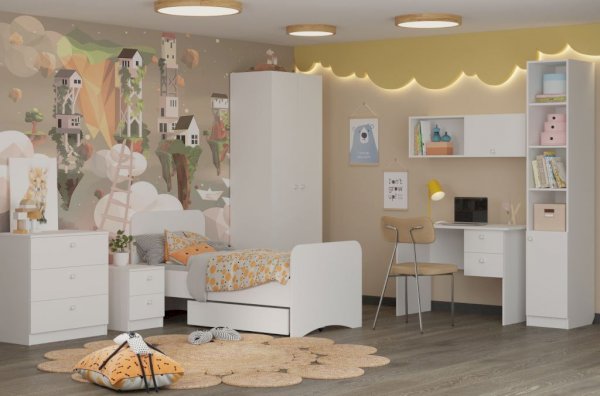 Комод имеет три вместительных ящика полного выдвижения, в которых с легкостью можно разметить как постельное белье, так и одежду.