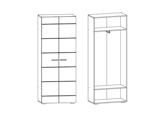 Изысканная простота прихожей «Фиеста» производит неизгладимое впечатление на поклонников современных стилей. Несмотря на незатейливость конструкции и отсутствие декоративных элементов, мебель смотрится ярко и нестандартно. Элитарный шик гарнитуру придают светлые глянцевые поверхности фасадов в сочетании с мягкими оттенками венге и ясеня шимо.