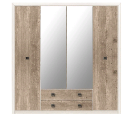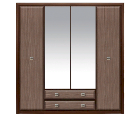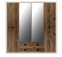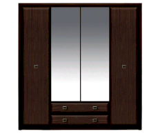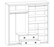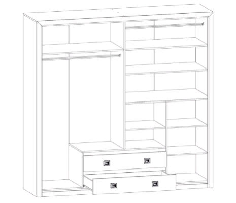 Шкаф имеет два вертикальных отделения за распашными дверями и отделение с двумя выдвижными ящиками