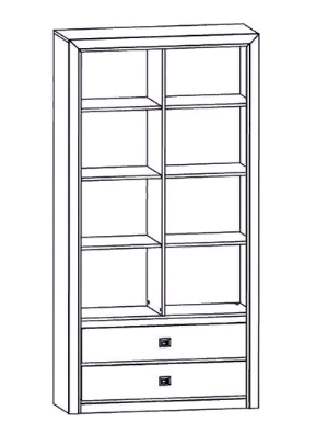 Шкаф с отделениями за распашными глухими дверями.В нижней части расположены 2 выдвижных ящика на металлических роликовых направляющих