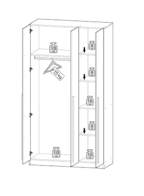 Максимальная нагрузка на полку: 8-10 кг