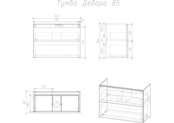 • 85 (ШхГхВ), см: 83,5х38,8х60