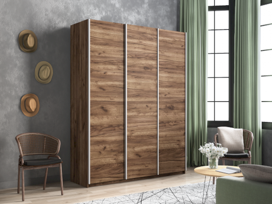 Серия «Прайм» отличается доступностью и функциональностью Навесные двери и лаконичная отделка фасадов создают прогрессивный дизайн. Подойдет тем, кто любит компактную и изящную мебель. Алюминиевые ручки и верхний ходовой профиль обеспечивают легкость и прочность конструкции. Многолетняя безупречная работа благодаря высококачественной немецкой фурнитуре Hettich. Прочная ПВХ-кромка толщиной до 1 мм защищает края от сколов и повреждений. Плавный ход дверей обеспечивает надежная система Hettich Top Line M. Дополнительно можно установить доводчики. Снаружи нет заглушек и винтов благодаря стяжечной системе крепления полок на флипперах, а корпус усилен эксцентриковыми стяжками. Навесные двери скрывают раздвижной механизм от глаз. Они надежно удерживаются в направляющих и не соскакивают. Каждая дверь поделена на 4 секции Секции расставляются в произвольном порядке, создавая новый дизайн фасада.