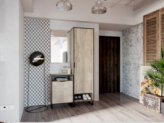 Одностворчатый шкаф из коллекции ФОЛК легко впишется в интерьер прихожей в стиле Лофт, придав ей современный и монументальный вид. Черная лаконичная ручка и металлические опоры подчеркивают оригинальный дизайн мебели, а черная кромка шкафа эффектно выделяет фасад изделия.