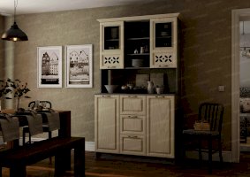 Буфет «Ампир» разместит в себе всю кухонную утварь. На его полках хватит места для различных видов посуды и инвентаря. Оригинальный дизайн модели оживляет интерьер. Резные элементы на дверцах и изящная фурнитура отлично сочетаются с текстурой дерева. Холодные светлые оттенки привносят в помещение кухни ощущение свежести и навевают приятные мечты.