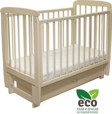 Кроватка "Соня 05" имеет механизм качания продольный маятник. Механизм качания фиксируется. Возможен вариант с ящиком.