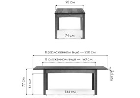Длина разложенного столика, мм 2200