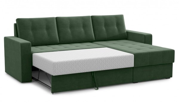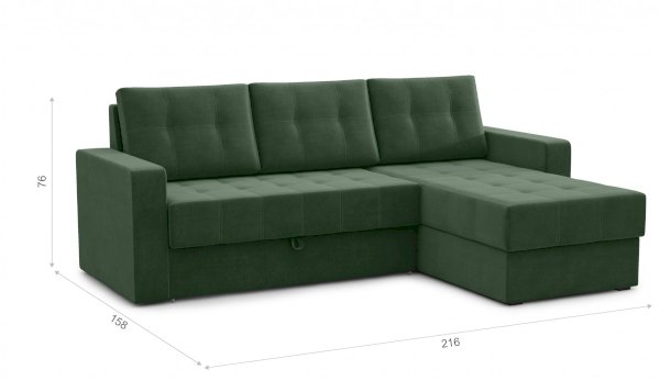 Стильный и компактный угловой диван с классической прострочкой и нейтральным цветом обивки подойдет для любого интерьера гостиной или спальни. Надежный механизм дельфин преобразует диван в удобное и просторное спальное место. Вместительный бельевой короб в оттоманке удобен для хранения постельных принадлежностей или сезонной одежды. Универсальный угол позволит определить его нужное положение при сборке.