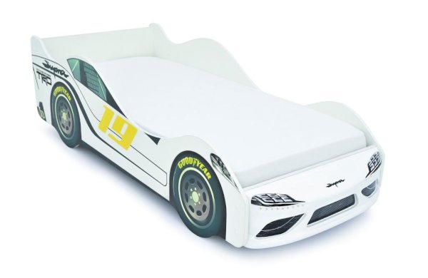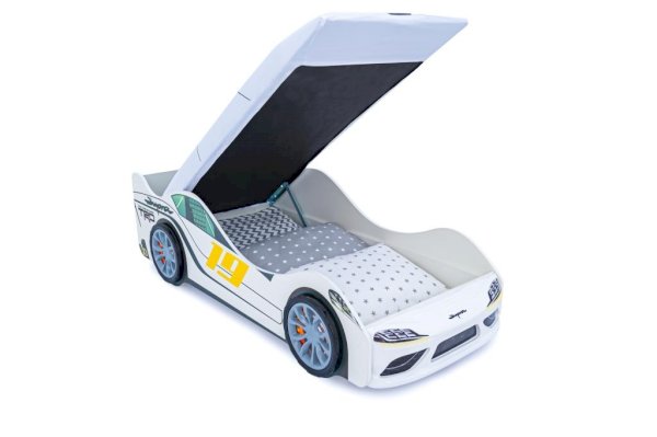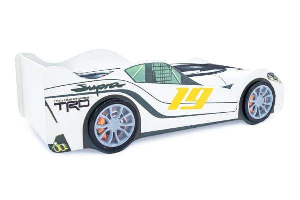 Детская кровать-машина “Супра” белая с подсветкой фар украсит любую детскую комнату. Кровать-машинка станет любимым местом для сна и игр мальчика или девочки от 2 до 10-12 лет.