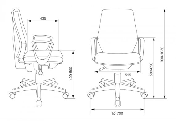 Высота с подлокотниками: 590-690