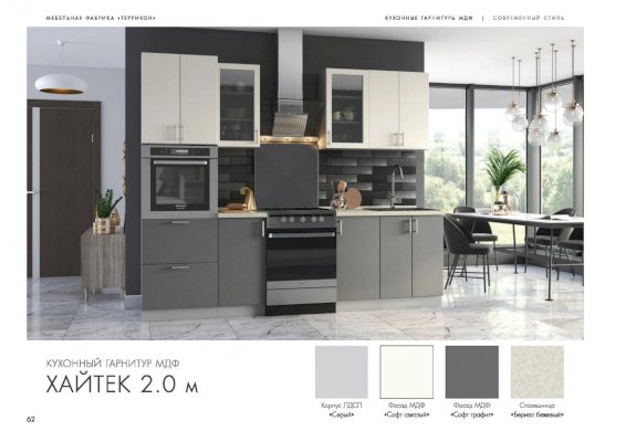 Кухня Хайтек изговаливается также в цветах серый/лайм глянец; серый/крем брюле глянец; серый/мокко глянец; серый/софт графит; серый/лайм глянец. Модули в этих цветовых решениях вы сможете найти в нашем интернет-магазине.