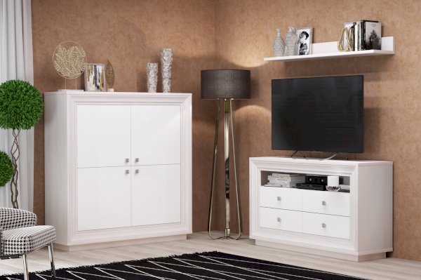 Низкий шкаф в гостиной может быть полезен не только для бережного хранения ваших вещей, но и для украшения интерьера, ведь его высота позволяет установить на него различные статуэтки, памятные фотографии или картины.