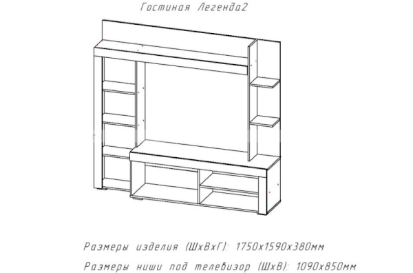 Ниша под ТВ (ШхВ): 1090х850 мм