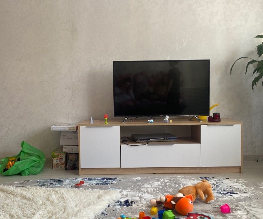 Хорошая тумбочка под телевизор. Выглядит отлично, материал надежный, не хлипкая. Комплектность полная - винтиков в избытке. Собрали быстро