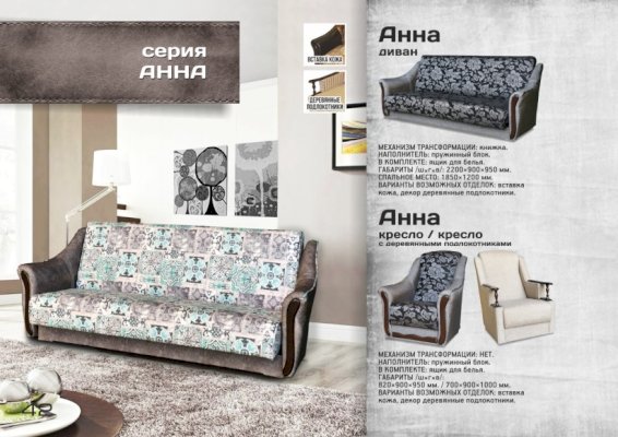 Возможная отделка: вставка кожа, декор деревянные подлокотники.